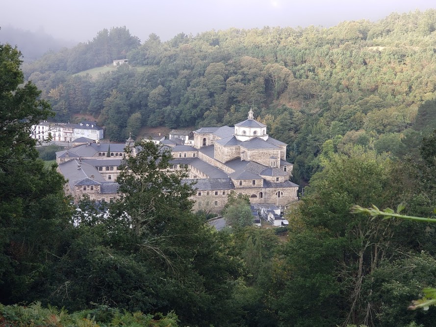 The monastery in Samos, Spain. The compound looks almost like a village itself. Shania, Manny and Diego tour the monastery with Gil and Meagan. Monasterio de San Julián de Samos.