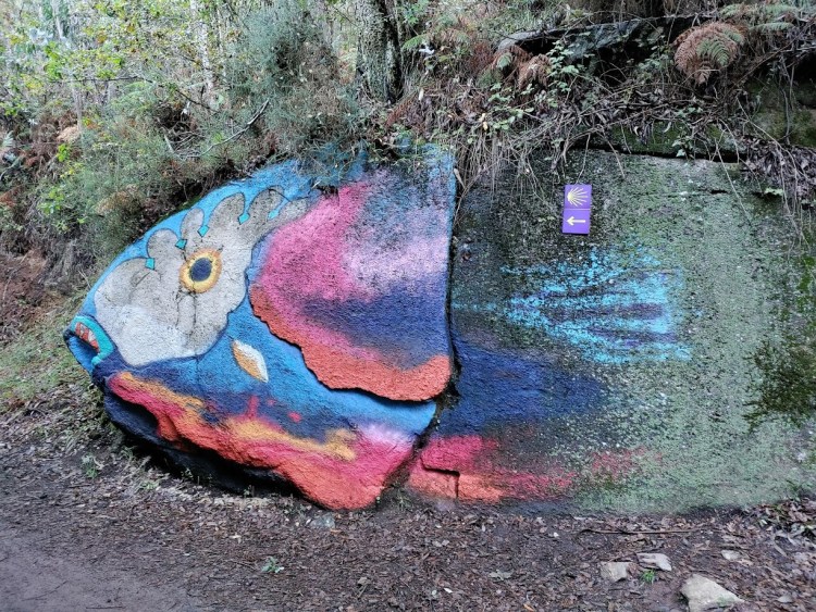 Leave it to the Camino to have the most interesting and gorgeous artwork appear out of nowhere along the path. Some call this graffiti or vandalizing, but whatever. I love the art we find along the way. I always appreciate it! I don’t give a rat’s ass what the naysayers say.