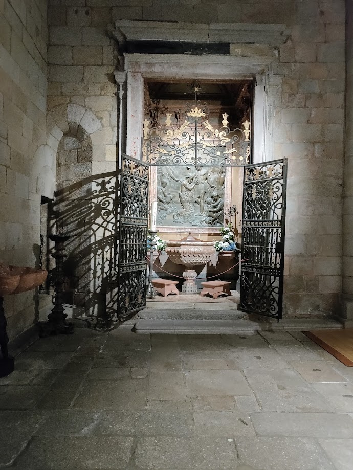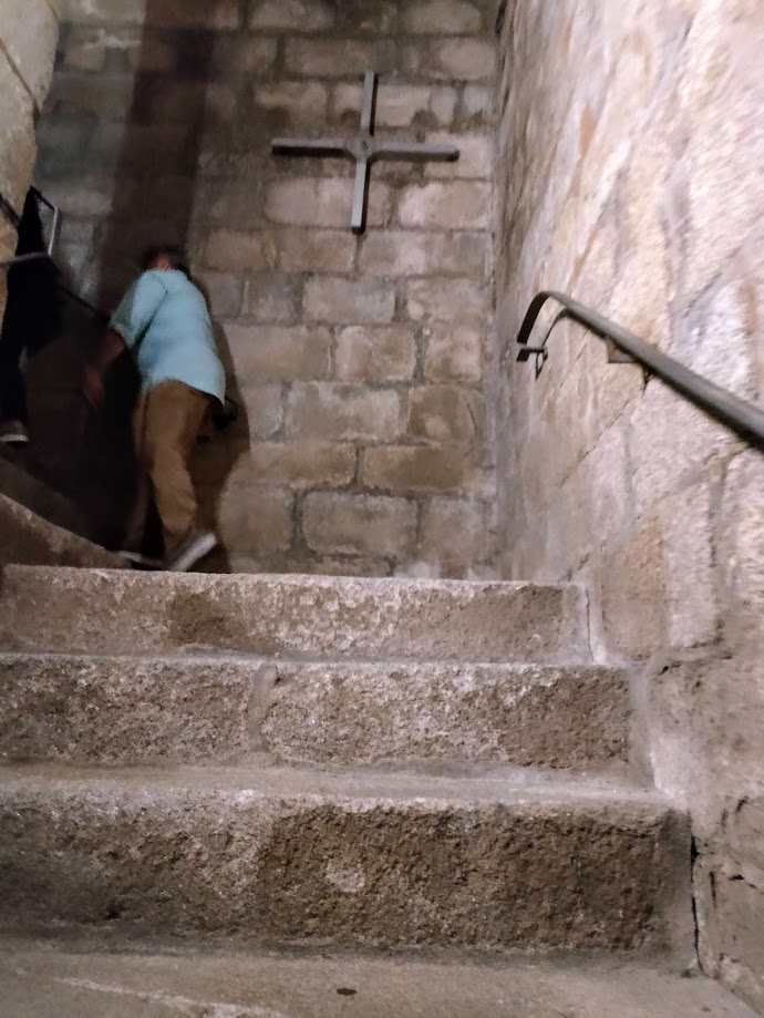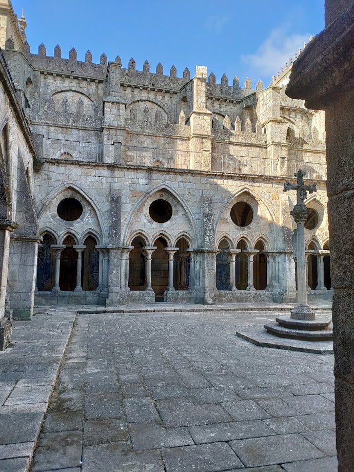 Once we oohed and awed over the gorgeous tile work inside the station, we were ready to continue our First Day walk. And right outside the doors of the station, Porto Cathedral (Sé do Porto) came into view! It was just another short walk away. This historic cathedral is the starting point of the Caminho if one is starting in Porto (you can actually begin the Caminho Português in Lisbon). There’s a rough and confusing history of the Roman Catholic Cathedral itself, but if you dig for it you will find that they broke ground on it in 1110 and it was completed in 1737. But you will also notice that there were changes well into the 1700s, the 1800s, and the 1900s. Not quite the work in progress at the Sagrada Família in Barcelona, which has literally been under construction since the mid 1800s and is not yet completed. Porto Cathedral is more of a fixer upper project that has undergone changes. Whether you’re in Porto for the Camino or as a tourist specifically to see the city, you shouldn’t miss the cathedral.