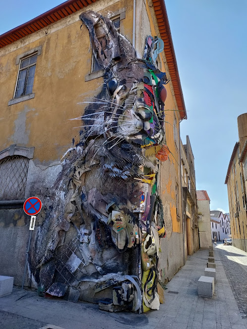 If you look at the pic above, you’ll see just how huge this sculpture truly is. I can hardly see myself in the photo. I wanted it for perspective. This rabbit is HUGE. Ever since I first discovered the Half Rabbit, it has fascinated me. It’s made from trash and recycled goods collected by the city of Gaia. Created by Portuguese artist Bordallo II (animal art out of repurposed materials is their thing), the Half Rabbit serves as a critique of society’s wasteful ways. I think it’s fair to say it’s also a call to sustainability.
