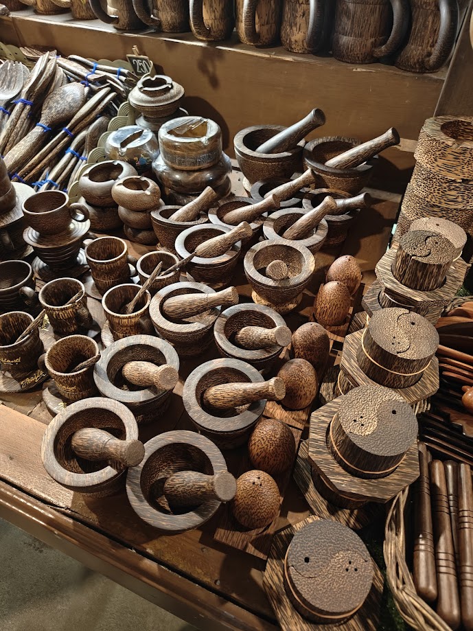 After the Train Market we stopped at a coconut farm. It is absolutely astounding how many things one can make with coconuts! As it is with all tourist locations, there was a souvenir shop…resplendent with coconut merchandise.