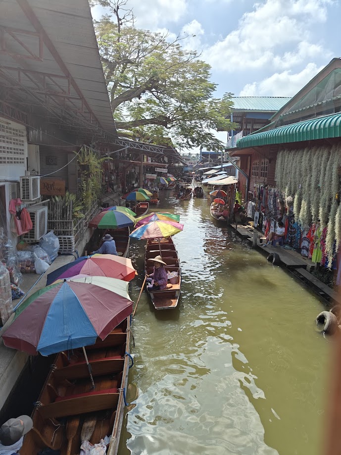 Once we were dropped off on land, inside a market, we could look down into the floating market from a little foot bridge. But we did not participate. We had a walking market. Talk about false advertisement. Oh well.