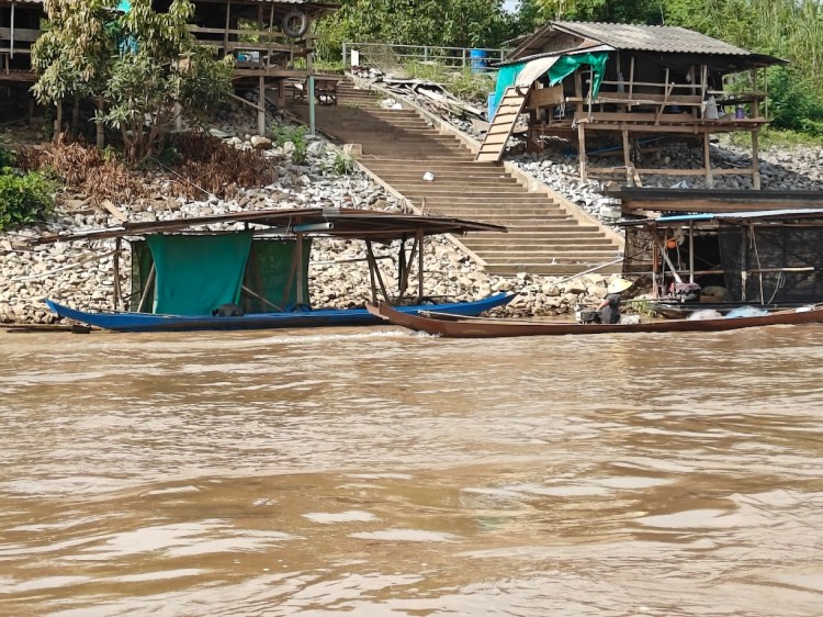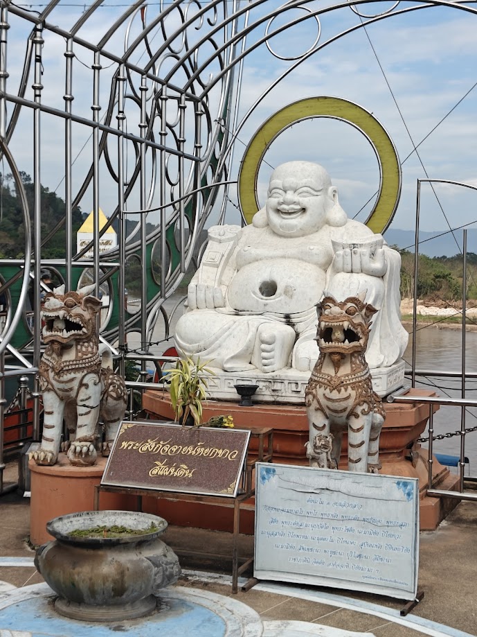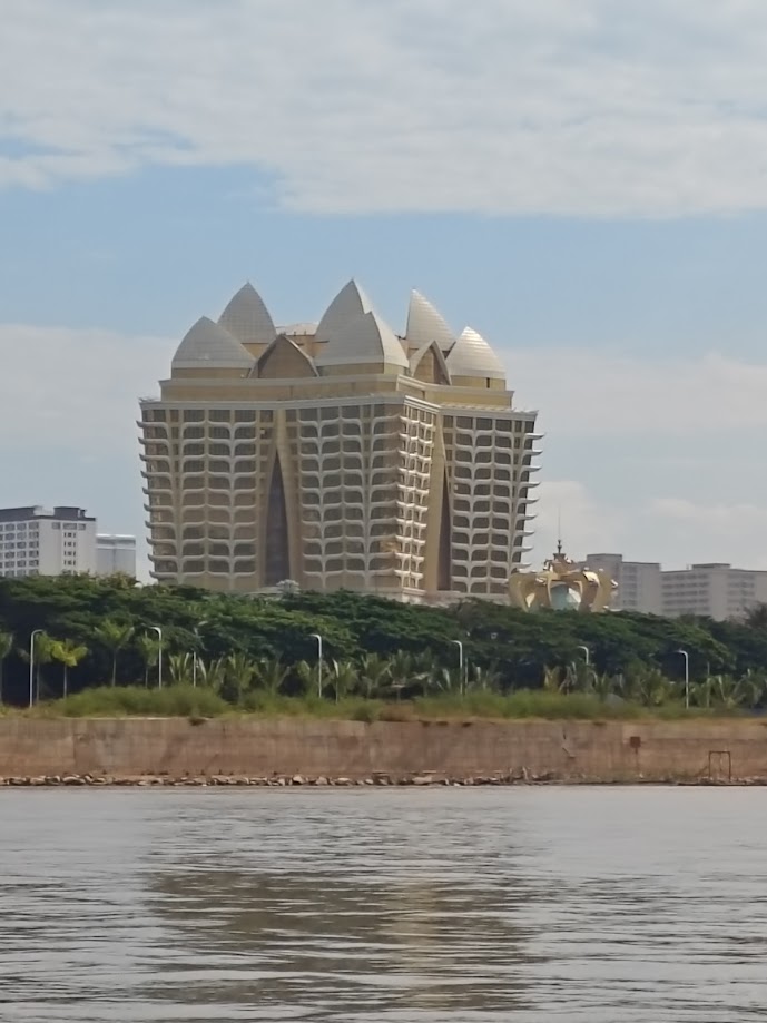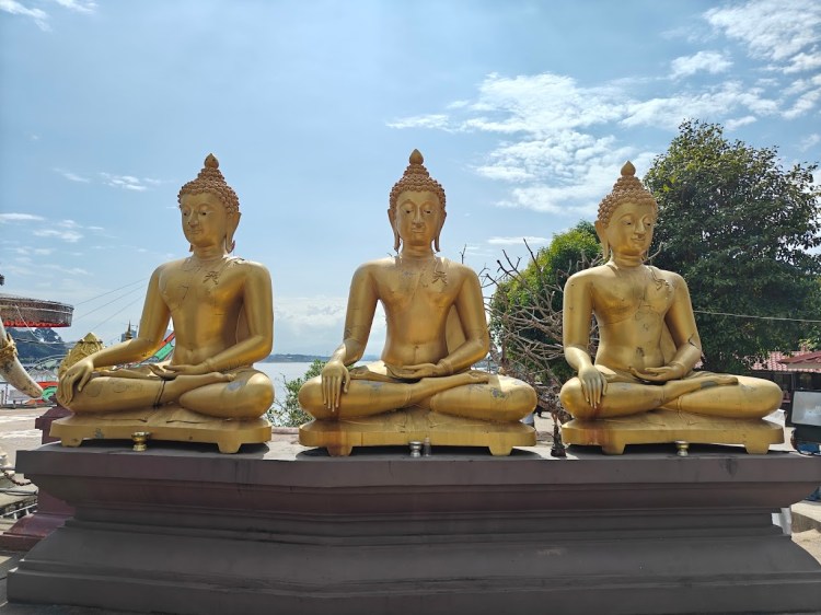 This huge Buddha–surrounded by what looks to represent a dragon boat–sat lotus watching over the rivers and the three converging countries, from the shore in Thailand.