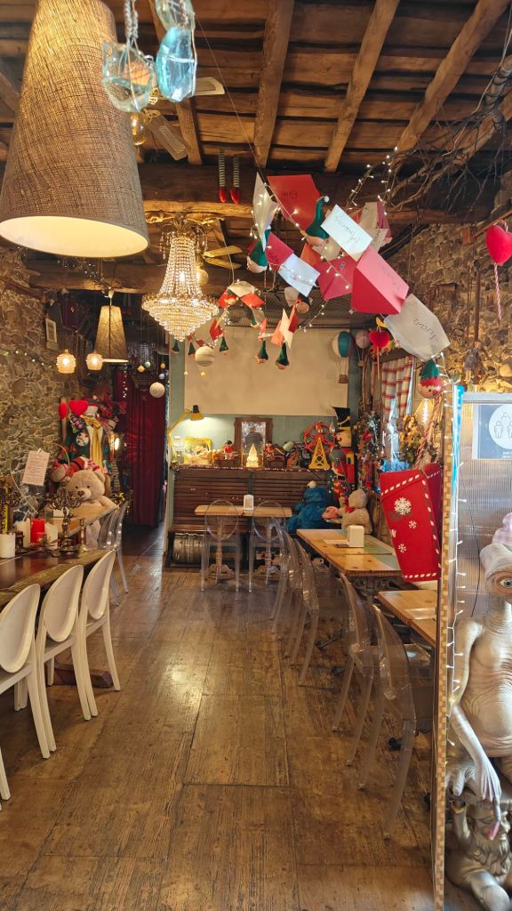 Oh, our stop for supper tonight. Just across the street from the castle. Godivah. We had hamburgers, cerveza, cheese fries, and guacamole nachos. So good! We did not take food pics. We sat on the patio, but here’s some interior pics. It’s a wild and crazy place… and they play THE best music! You should check it out.