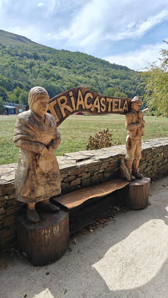 After Fonfría, we passed through another couple of towns before making it to Triacastela. One thing I want to mention about coming into Triacastela is the tree in Ramil! The Castiñeira de Ramil tree in Ramil, just outside of Triacastela. This tree is over 800 years old, with some estimates placing it up to 850 years old. The perimeter of the trunk is approximately nine meters. Touching it has to be good luck, right?! I made Michael touch it and pose for a pic. Beautiful!