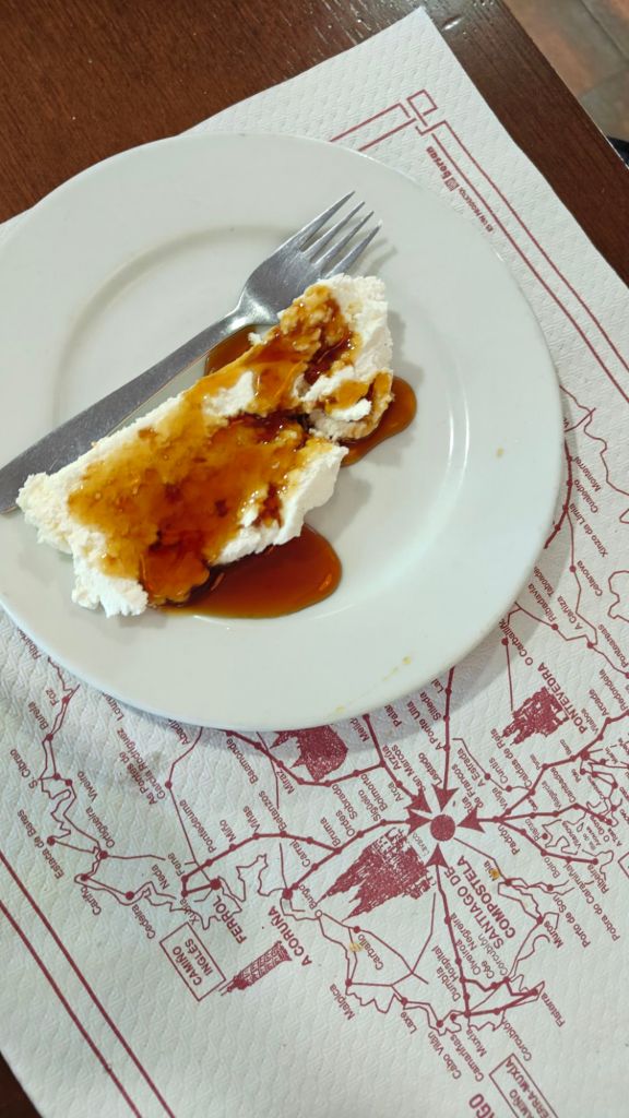 Do yourself a favour and eat your meal at Restaurante Esther. So good! The Caldo Galego is the best! We had the Menu del Dia and we both chose the Caldo Galego and the chorizo sausage. So so good! They brought a huge bowl of soup with a ladle. It was enough for 2 bowls for Michael and 3 bowls for me. He loves me! The chorizo was incredible, as were the fries. I had my first Tarta de Santiago of this trip. So simple and delicious! 😊Michael got the O Cebriero cheese with honey.