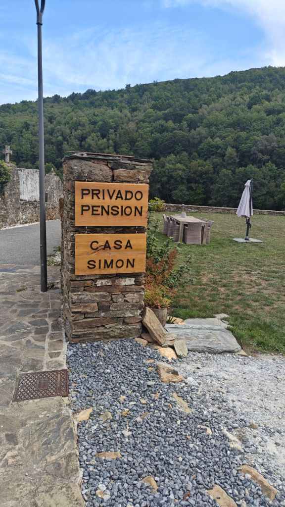 We are lying in our bed after having the best Menu del Dia in all of my Caminos! This albergue, Pension Casa Simón, is absolutely beautiful. We booked breakfast for tomorrow for €8. Fried eggs and the works. Communal table. Can’t wait! This place is huge. We’re on the second floor. If you know anything about Europe, you know that’s actually the 3rd floor. First floor is zero here. The pension is literally right beside the church. The yard you can use for hanging laundry is directly across from the church.